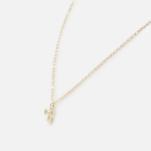 A delicate and feminine piece, this gold necklace is enhanced by a small bow-shaped pendant adorned with translucent cubic zirconia. Refined and elegant, it adds a touch of softness and shine to all your outfits, day or night.