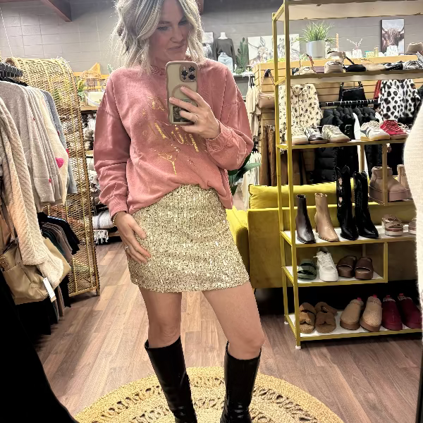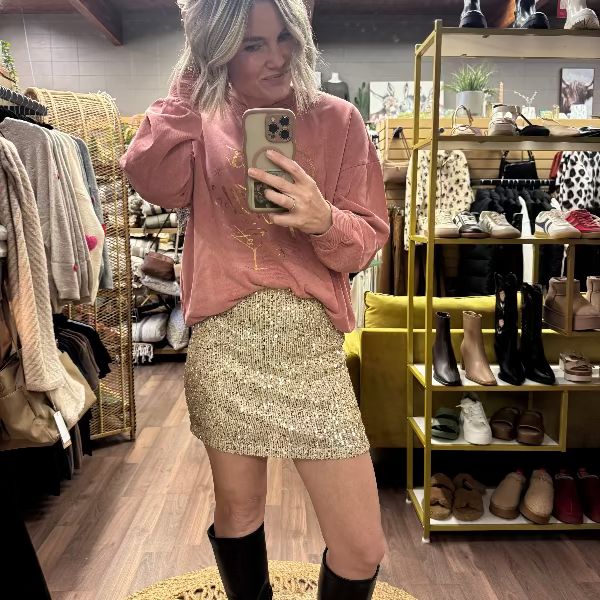 Indulge in all-day comfort with this roomy, oversized sweatshirt featuring a fun "Thats the Spirit" and a gold metallic martini screenprint graphic. This classic cotton crew neck pullover is the perfect year-round staple for adding a playful touch to your wardrobe.
