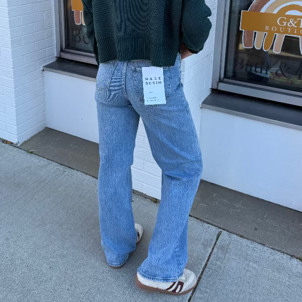 The City Straight in Be Mine Vintage is a high rise straight leg jean in a timeless light blue wash. Clean hems and straight lines make this a versatile jean for any occasion.