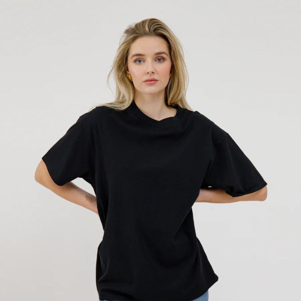 Our 100% cotton Boxy Tee features a wide-cut body that hits right at your hips. Just like that perfect vintage tee hanging in your closet.