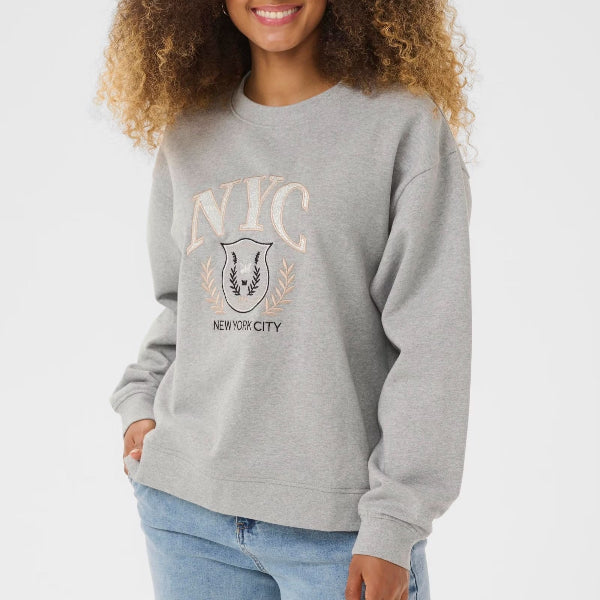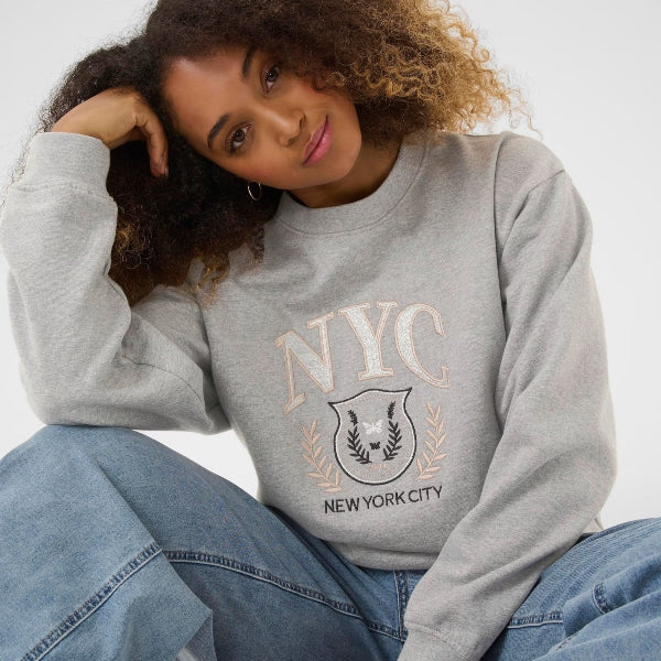 This women's sweatshirt offers a relaxed fit, classic crew neckline, and long sleeves, ensuring comfort and easy layering. Embroidered NYC detail adds a statement touch for versatile, everyday wear.