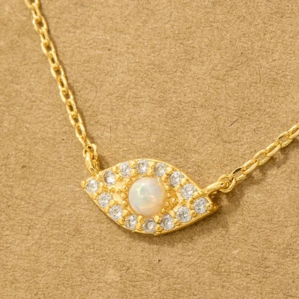 This trending necklace brings a luxurious gold dipped opal studded evil eye charm necklace style. Indulge in the allure of exquisite craftsmanship as this trending necklace effortlessly adds a touch of luxury to your attire.