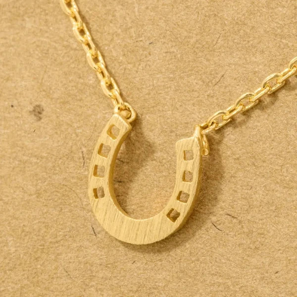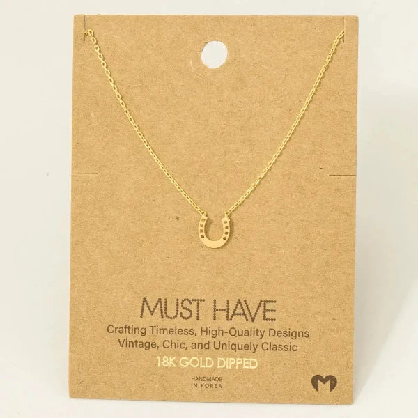 This necklace displays a vibrant mini horseshoe pendant style. Unveil a new dimension of sophistication as this necklace effortlessly enhances the elegance of your ensemble. GOLD DIPPED