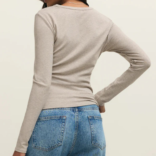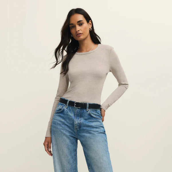 Smooth, lightweight, and body skimming. This crew neck top is made from our signature Second Skin Baby Rib with a touch of stretch for a flawless fit. It can be worn tucked or untucked and is easily layered over, making it a year-round go-to.