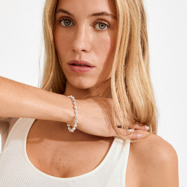 Air with attitude! The AIR bracelet from Pilgrim brings serious edge to your styling. With its bold gold-plated orb design and sculptural spheres, it delivers standout vibes that work with minimalist looks or stacked, expressive layers. Wear it solo for a sleek statement or mix it up with chunky cuffs and chains. Made from 98% recycled materials — because style should never cost the planet.