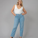 The Baker is on-trend and ready to be taken out. These high-rise jeans are made to have a slight relaxed fit and feature a criss-cross button fly. Making its debut for Spring in the wash, Luster.