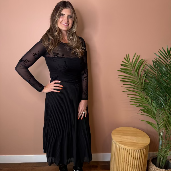 Zip closure in the backΒ 95% Polyester 5% SpandexΒ FIT: True to size - Trish is 5'11" wearing size M