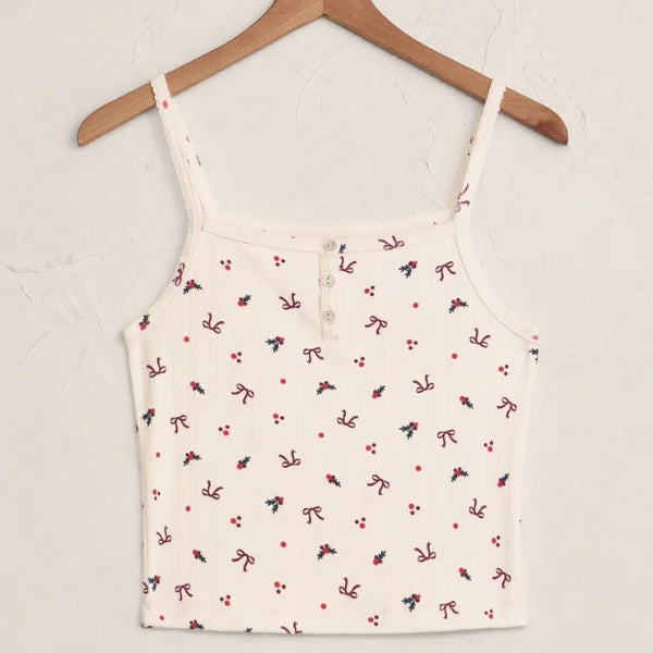 Soft pointelle fabric gives this cami a silky feel with a touch of stretch for all-day comfort. Finished with dainty buttons and slim straps, it’s the piece you’ll wear lounging or layering.