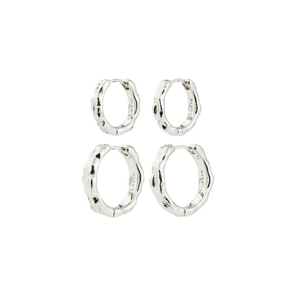 Double up on effortless cool! The silver-plated DARBY hoops from Pilgrim give you two sets of earrings in different sizes, letting you mix and match according to your mood and the occasion. The wavy, soft shaped design adds a unique touch that's perfect for both stacked looks and minimalist styling. Wear them solo for a clean vibe or combine with more earrings for an extra layer of personality. The easy-to-use snap lock ensures a comfy fit— all day, every day. Evergreen pieces that are sure to become your everyday favourites. Made from 99% recycled materials – fashion with care!