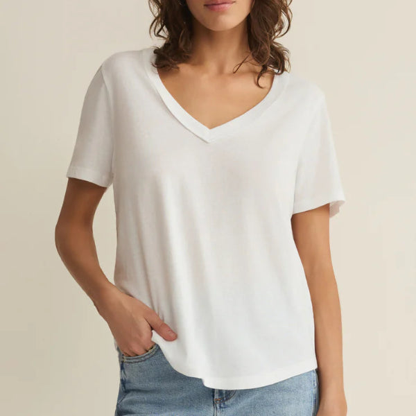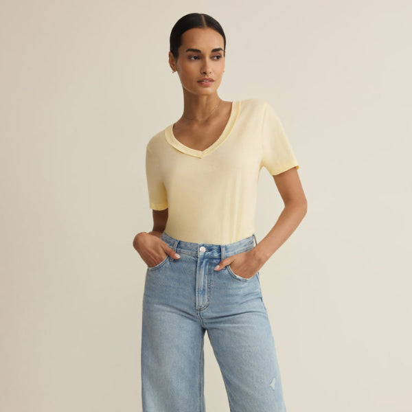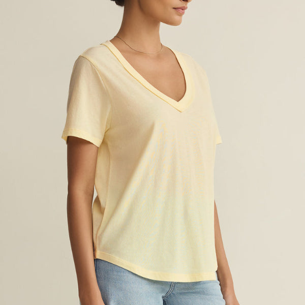 This short sleeve top is made of 100% cotton, has a relaxed fit, and a flattering v-neck with wide trim detail. Pair it with the Vista Pant or Scout Pant, you can’t go wrong with this one.