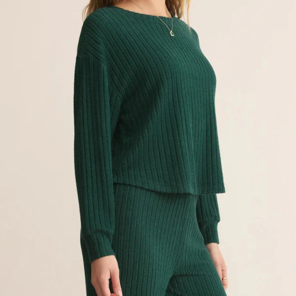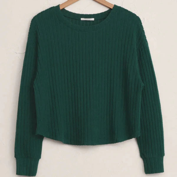 Crafted in silky rib knit, this long sleeve top delivers a smooth, body-skimming fit. Designed for easy layering, it pairs perfectly with matching bottoms or your favorite lounge pants.
