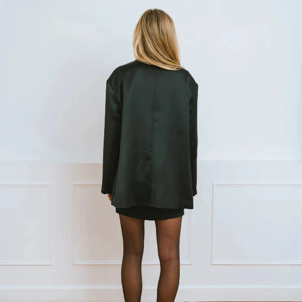 Relaxed and slightly boxy with an oversized dropped shoulder and front darts for subtle structure. A small, built-in shoulder pad adds just the right amount of lift. Fully fused and lined, it features three buttons down the centre front. Oversized enough to wear solo as a dress, or pair it with our Evie Skirt for the full set.