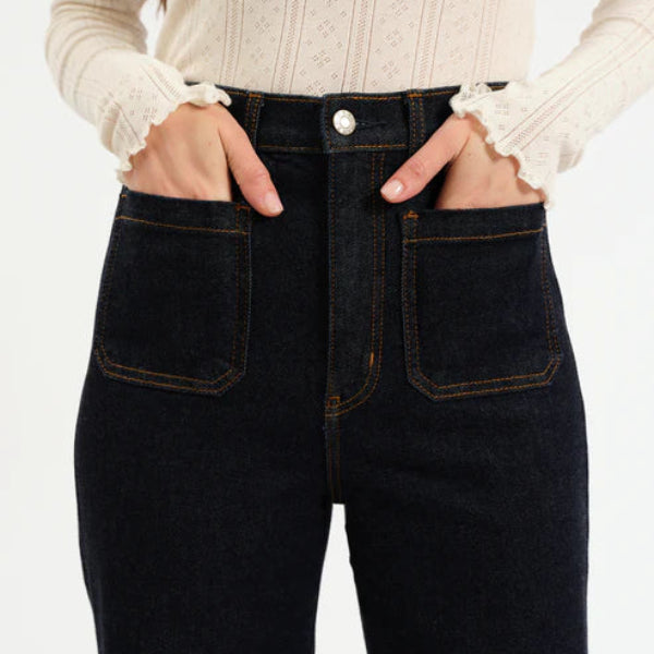 The cool girl jean, Far Out is a modern wide leg silhouette. This light wash fit is constructed from our Hug denim, which is flexible enough to hug your body, yet heavy enough to cinch you in.