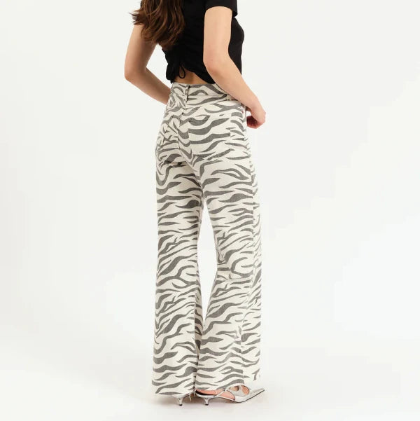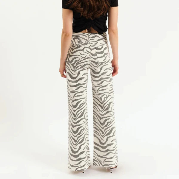 The cool girl jean, Far Out is a modern silhouette made fun with a statement making zebra print! The fit's twisted seams and waist defining high rise give the appearance of longer legs. This wide leg is constructed in our "hug" denim that hugs your body, but has just enough weight to keep a structured fit.
