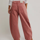 So bold barrel jeans from our We The Free collection featured in a mid-rise fit with subtle distressed detailing and wide-legs that taper at the ankle.