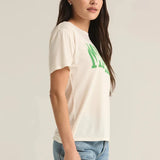 Get into the holiday spirit with this laid-back graphic tee, featuring a festive "merry" screen print graphic. Made from ultra-soft, lightweight cotton, this relaxed fit tee is perfect for festive days spent staying cozy indoors or stepping out for some fun.