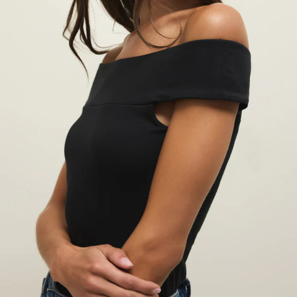 Soft, smooth, and body-hugging, this off-shoulder top flatters with just the right amount of stretch. Made from our signature Second Skin rib fabric, it’s the perfect piece to dress up or pair with denim for an easy casual look.