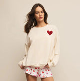 Oversized and cozy, this signature fleece sweatshirt features a bold red heart boucle graphic on the front. Relaxed and easy, it’s your go-to for lounging with a playful twist.