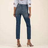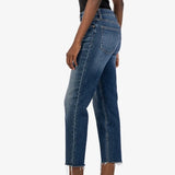 - These high-rise jeans feature a raw hem and our signature Fab Ab pockets for a flattering fit. The dark wash provides a versatile, everyday look that’s both comfortable and easy to dress up or down for any occasion.