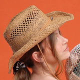 The Caroline cowboy hat is made from paper with a stylish rope trim and vented crown, perfect for a hot Summers day.
