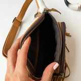 Perfect for keys, lipstick, credit cards, money, phone • hair-on cowhide on front • leather back • fabric lining inside • zippered top closure • small zippered pouch in front • zippered pocket on back • adjustable leather strap - can be adjusted to use around your waist or across your chest • choose your color!