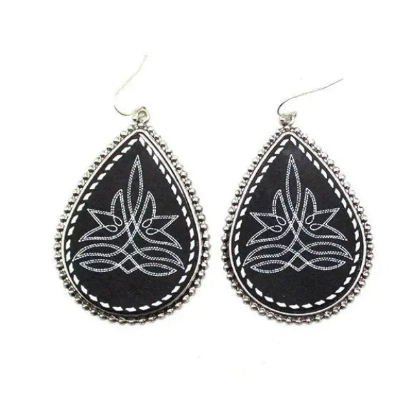 Western Bluebell Boot Stitch Teardrop Earring