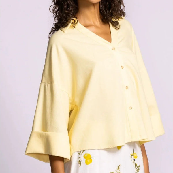 Bright, effortless, and perfect for warmer days, the Charlie Top brings an easy, polished feel to your everyday wardrobe. The soft blend of fibres gives it a breathable, lightweight drape, while the cheerful yellow tone makes it a standout piece for spring and summer styling. Pair it with denim, linen trousers, or dress it up for dinner on the patio.