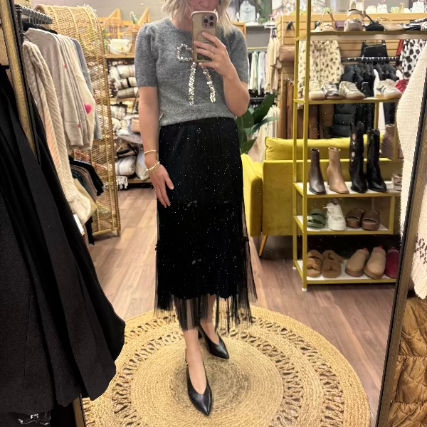 -Decorative sequin bow on the center front
