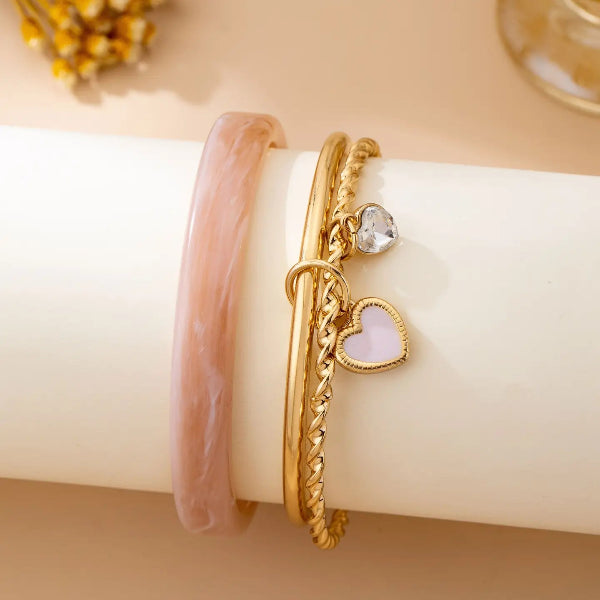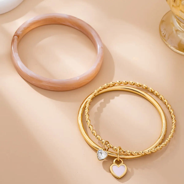 This curated bangle set delivers instant wrist impact with polished gold, silver, and creamy ivory resin. Varied textures-hammered, twisted, beaded, and smooth-create a rich, layered designer look that's lightweight, comfortable, and effortlessly chic from day to night. Product details clasp: slip-on metal finish: Gold Plating product: Lead & Nickle Compliant durability: Double E-coating